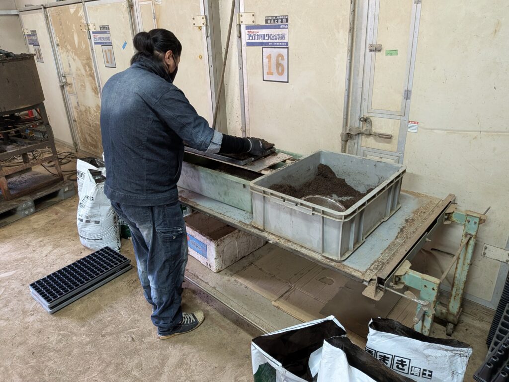 - セルトレイに土を入れる