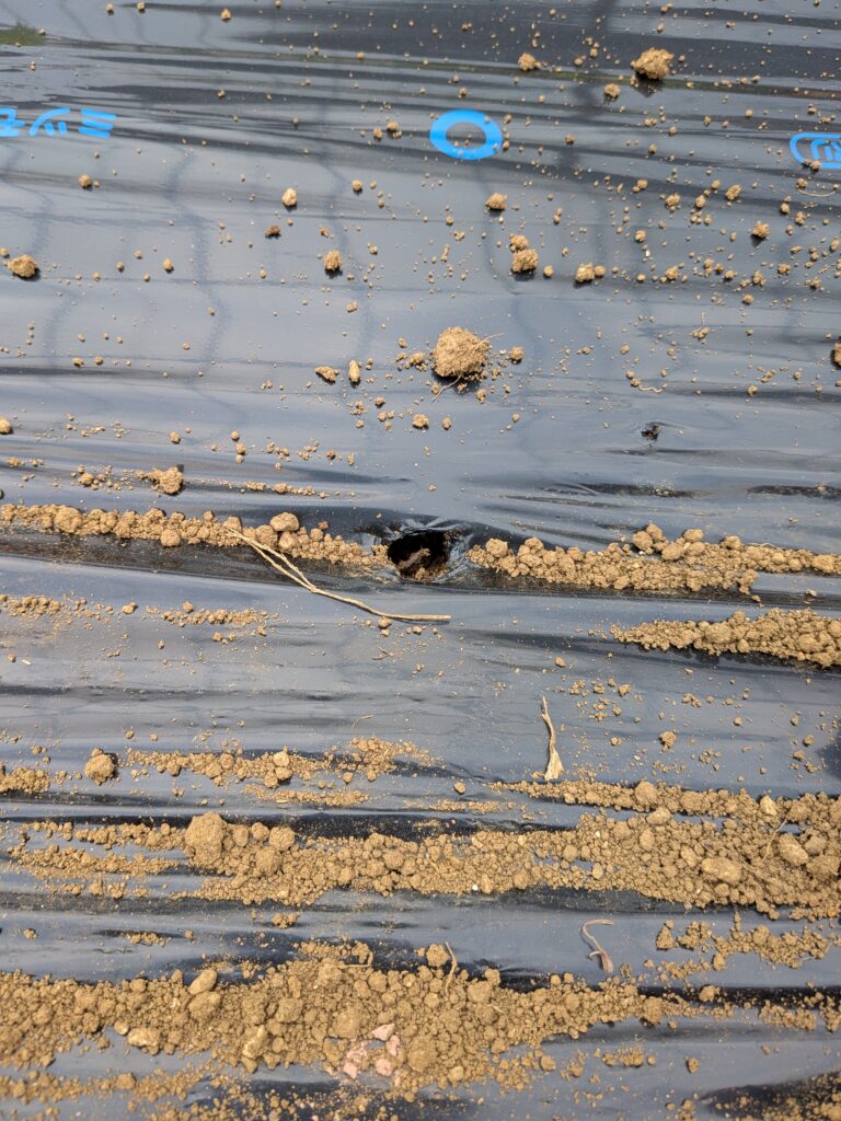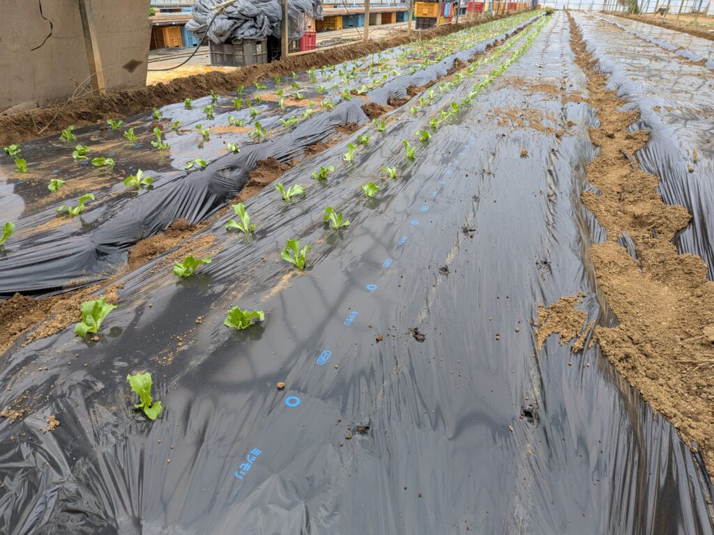 畝には、あらかじめ定植位置の目安となる穴が開いており、