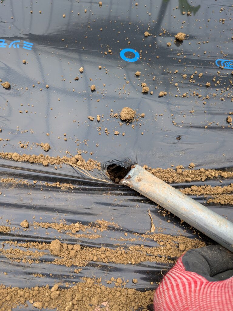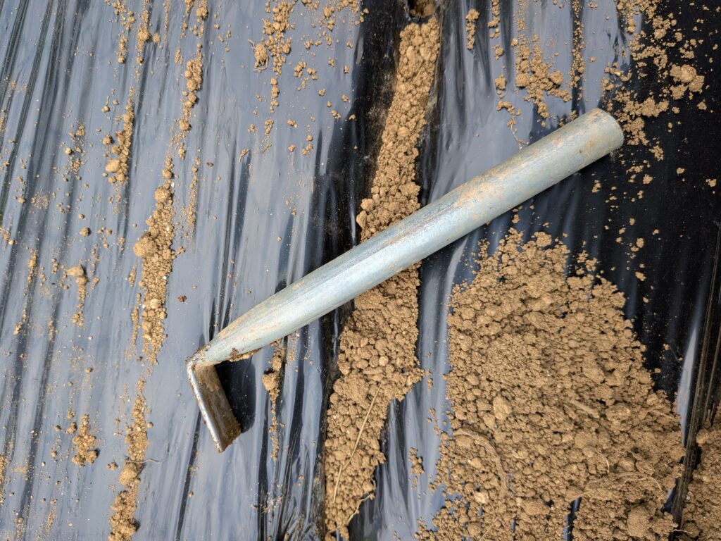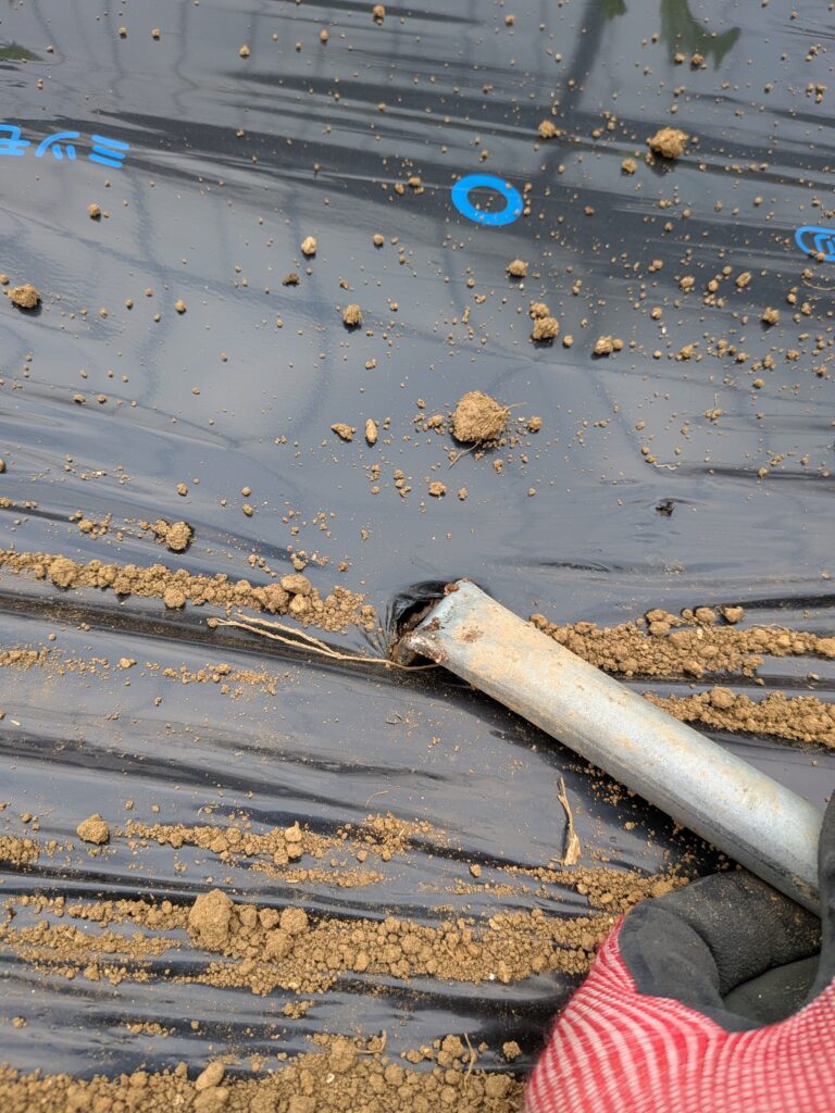 その位置に治具を差し込み、手前に引いて定植穴をあけます。